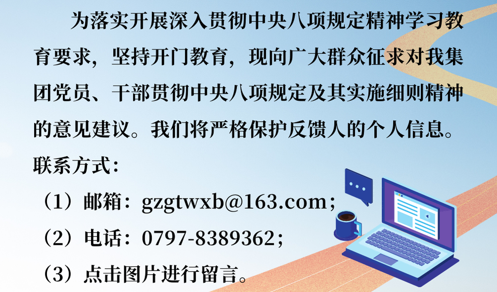 | 6 | 贛州市國投集團(tuán)黨委理論學(xué)習(xí)中心組舉行深入貫徹中央八項(xiàng)規(guī)定精神學(xué)習(xí)教育 專題學(xué)習(xí)研討會(huì) | 2025-04-01 |